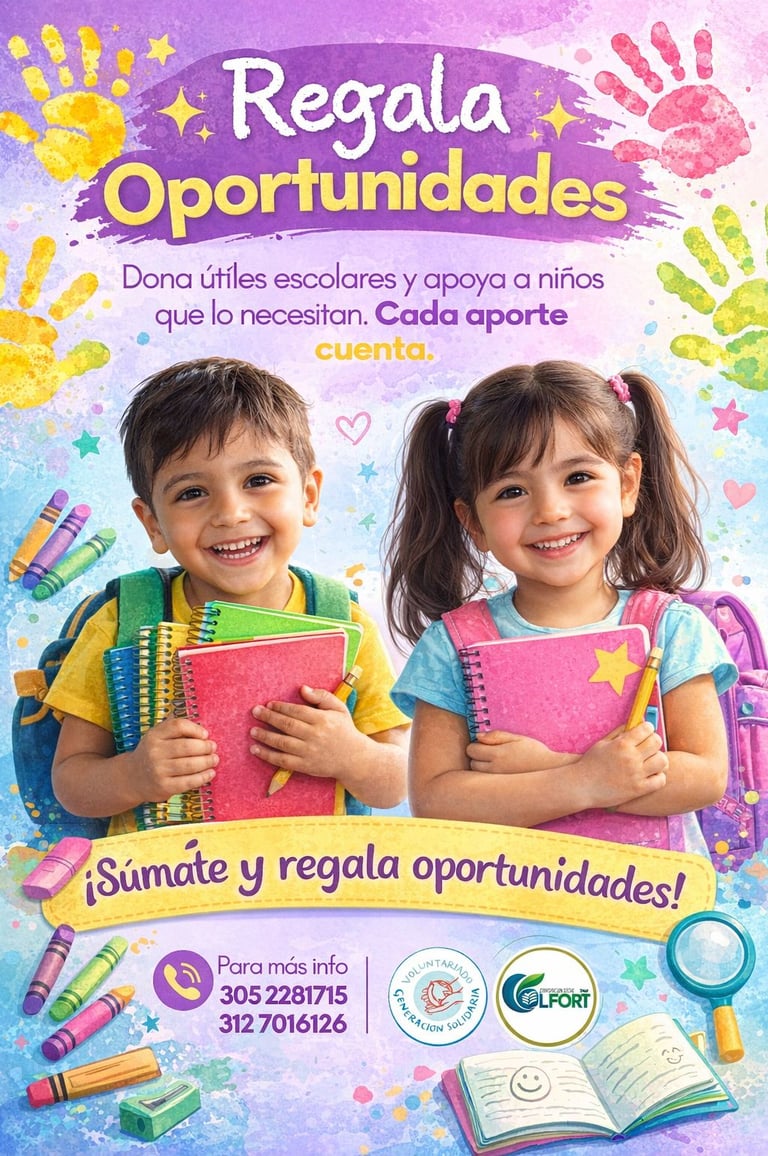 La educación es la semilla que permite transformar vidas, fortalecer comunidades y construir un mejor mañana. Sin embargo, muchos niños y jóvenes inician su proceso educativo sin contar con los útiles escolares básicos, lo que limita su aprendizaje y desarrollo.